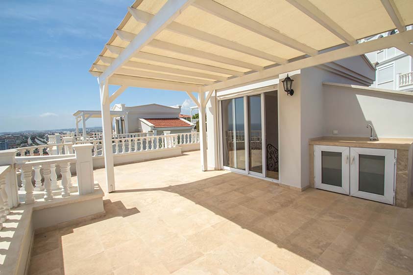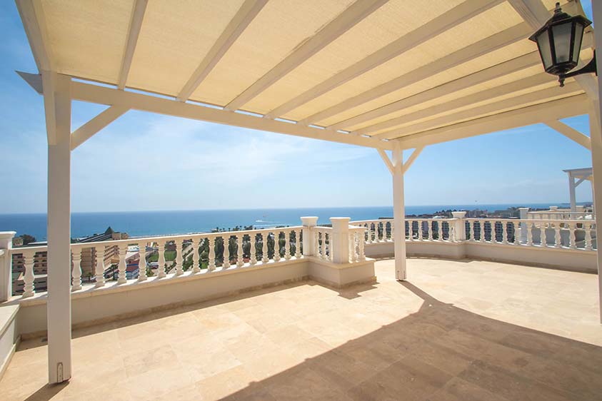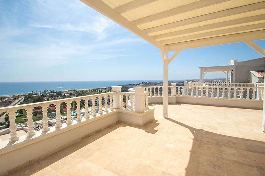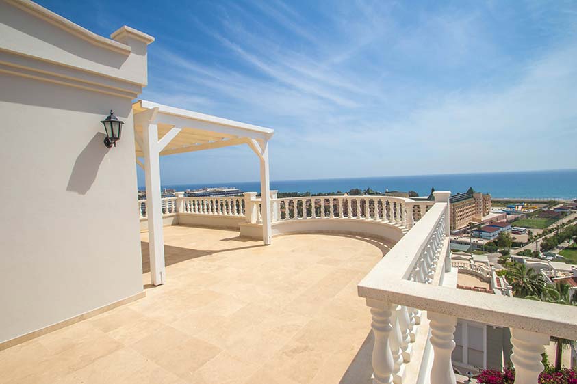 Denne villa er beliggende i det eksklusive Uygun Oasis Club II resort, som er beliggende i Konakli, Alanya. Dette område udmærker sig ved at være et af de eneste steder hvor det er muligt at få en villa på strandsiden af hovedvejen. Villaen har de følgende eksraordine kvaliteter: