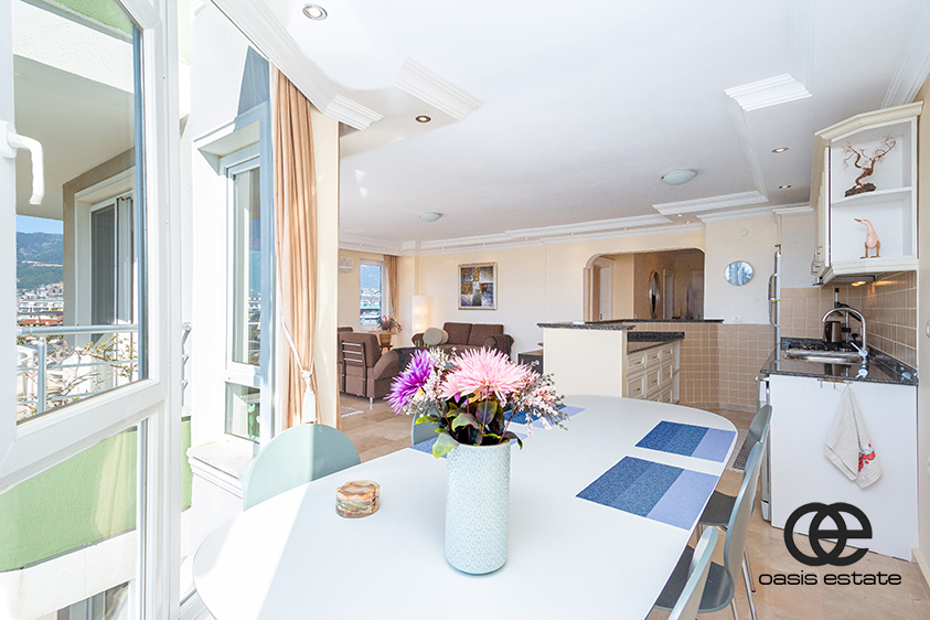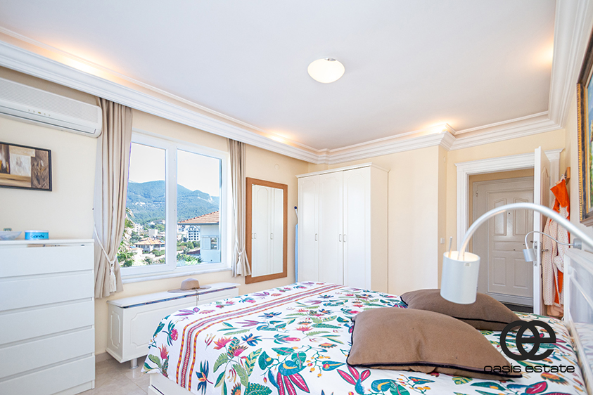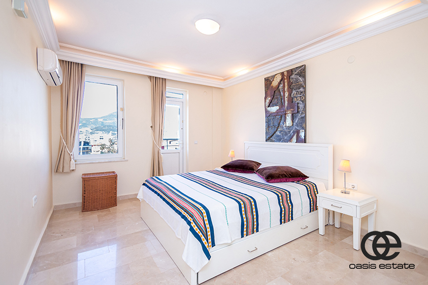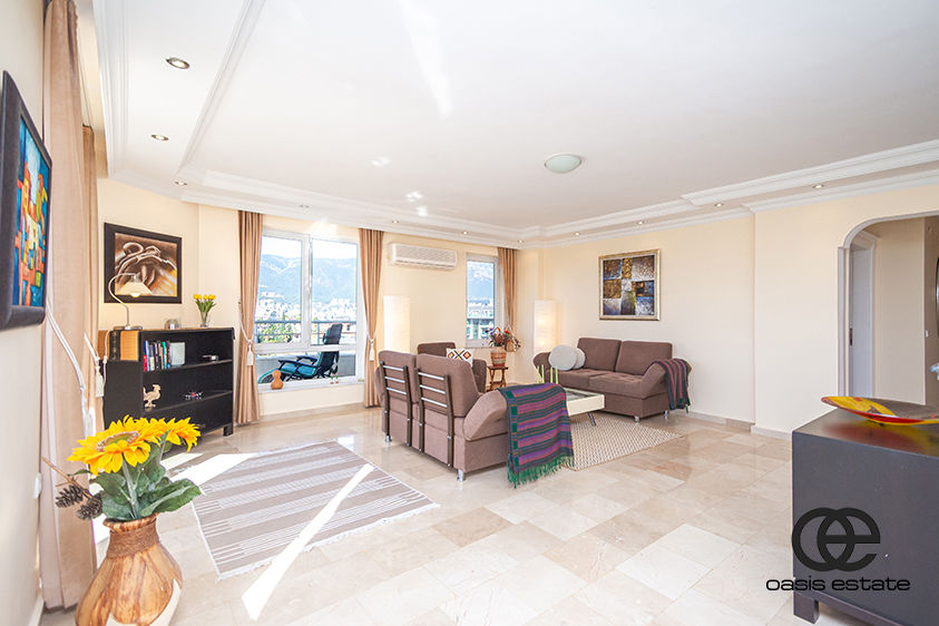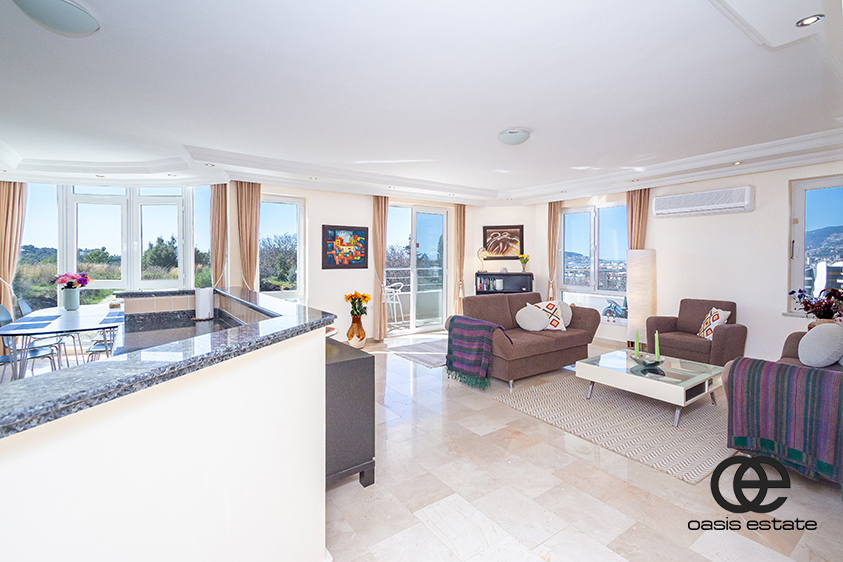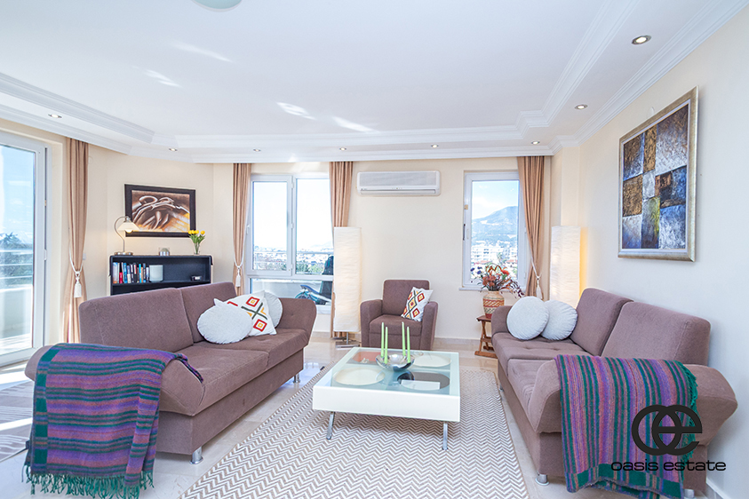 Denne leiligheten er et godt alternativ for kjøpere som ønsker et romslig hjem med havutsikt i et rolig og velholdt kompleks i Oba, Alanya.