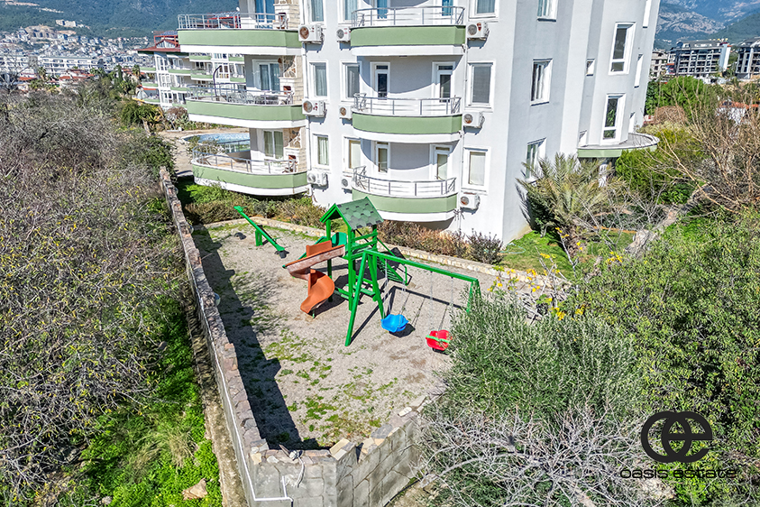 Denne romslige 2-roms leiligheten ligger i Oba, Alanya, i det fredelige Orient Hill-komplekset. Området er rolig og boligpreget, og tilbyr et rolig bomiljø langt fra byens trafikk og støy.