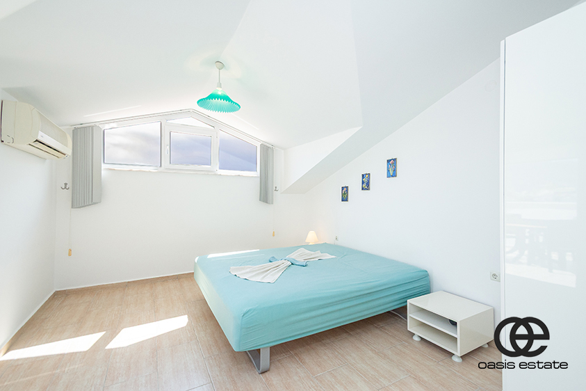 Innvendig har penthouse-leiligheten et moderne åpent kjøkken og stue. Leiligheten er fullt møblert og klar til innflytting med en gang.
