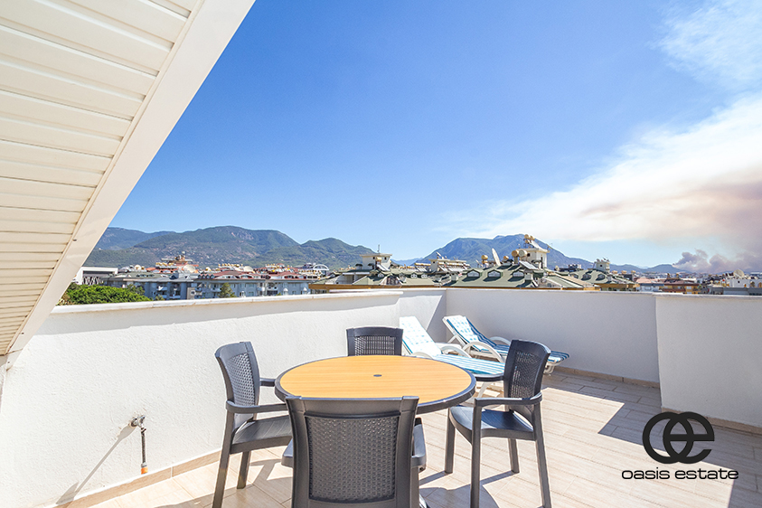 Denne romslige 4-roms penthouse-leiligheten ligger i det velholdte boligkomplekset Uygun Park i Oba, Alanya. Leiligheten ligger bare en kort spasertur fra stranden og i nærheten av kjøpesentre, restauranter og kafeer. Transportforbindelsene er utmerkede, noe som gjør det enkelt å komme seg rundt i byen.